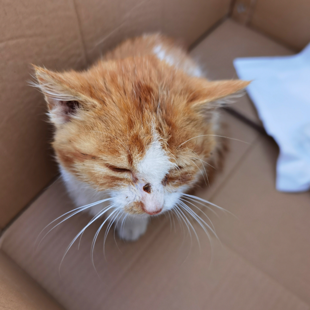 Pomum, on the other hand, is a ginger and white short-haired cat who was once a stray. I brought him home on November 3, 2020, when he was just over two months old and severely weakened by cat flu (feline herpesvirus).